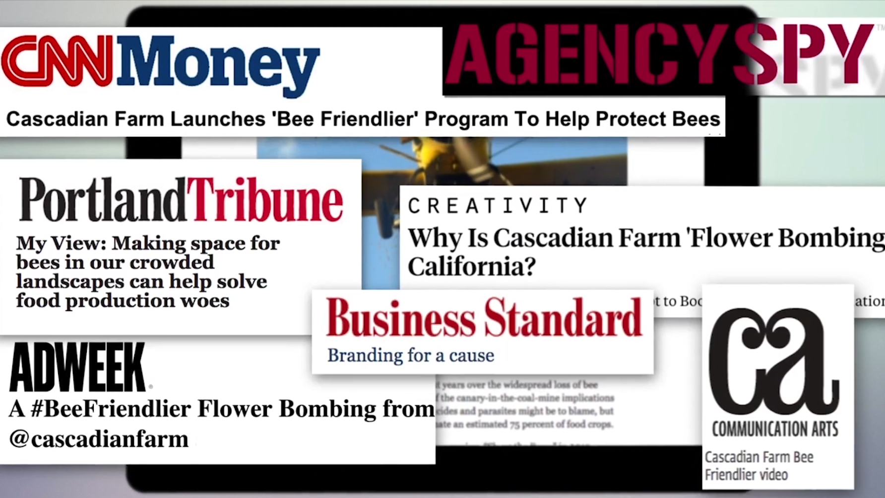 To help, Cascadian Farm Organic (General Mills) flower bombed a farm field in Davis California with over a million colorful, organic wildflower seedles. From, of all things, a crop duster. Once the seeds grow, they’ll provide necessary food for bees and other pollinators in the area.